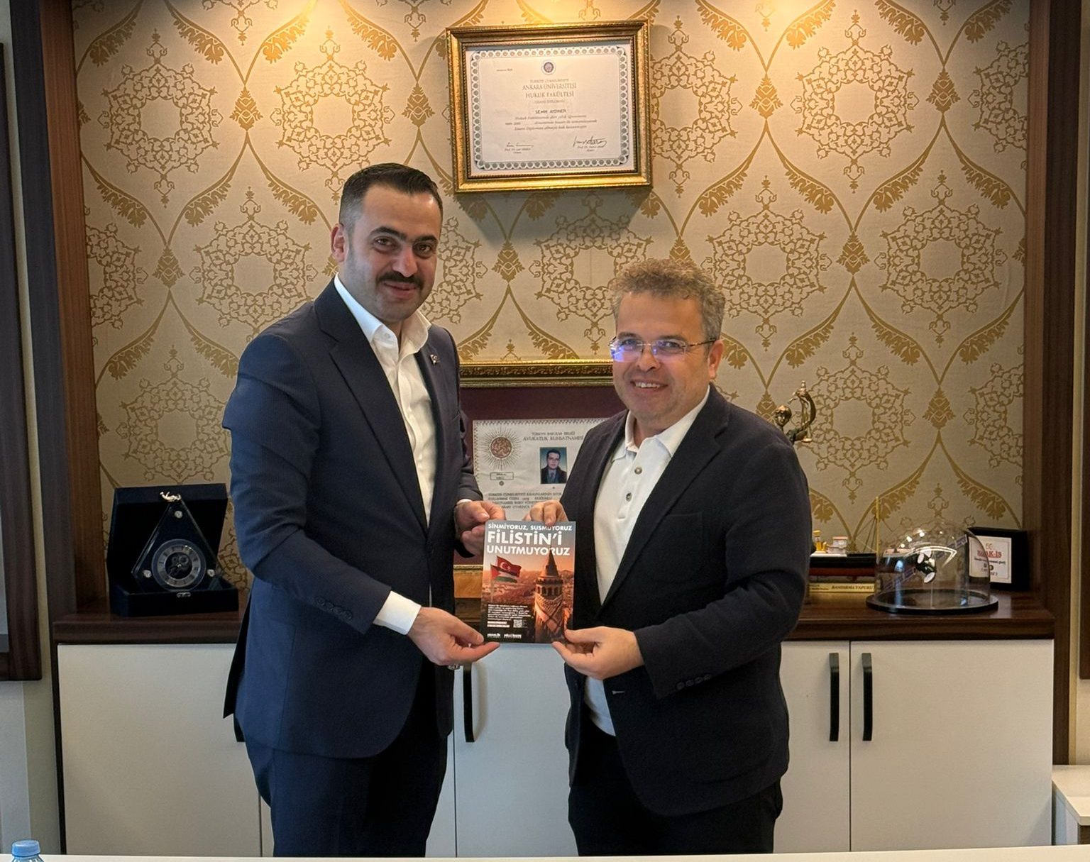 Türkiye Gençlik Vakfı (TÜGVA) Başkan Yardımcısı Sayın Enes SEBA Sendikamıza ziyarette bulundu. Seba 1 Ocak’ta Galata Köprüsü’nde düzenlenecek Filistin’e destek eylemi için katılım davetini iletti. Genel Başkanımız Av. Semih AYDINER, sendikamızın Filistin halkıyla dayanışma kapsamında, kararlı ve güçlü bir şekilde, geniş katılımla eyleme iştirak edeceğini ifade etti.